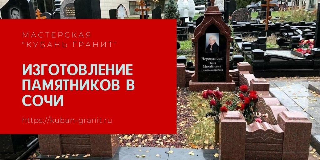 Сочи крупнейший город юга России, популярный пляжный курорт. В 2014 году здесь прошли зимние Олимпийские игры. Туристический бизнес здесь процветает и с каждым годом выходит на новый уровень. А потому существует большая конкуренция и спрос на услуги отличается высокими запросами. В любой сфере люди ищут профессионалов и ждут высокого качества. Наша мастерская «Кубань Гранит» предоставляет услуги, основным направлением которых является изготовление памятников. Уже больше десяти лет мы выполнили более сотни проектов по всему Краснодарскому Краю, а также в республике Адыгея.